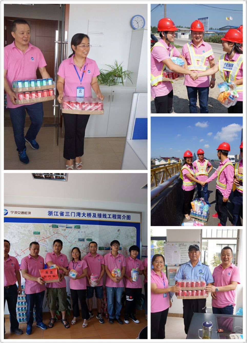 7月中旬以來,高溫來勢兇猛,我省大部分地區(qū)迎來了37度以上的酷熱天氣,近期甬城更是“炎”值報表,連發(fā)高溫紅色預(yù)警信號,最高氣溫連續(xù)高達(dá)40度以上,滾滾熱浪使一線檢測人員承受著極大的“烤”驗(yàn)。為切實(shí)做好防暑降溫工作,28日起,公司工會全面啟動“高溫送清涼,員工保安康”慰問工作,先后奔赴余慈、三門灣兩個異地試驗(yàn)室、繞城高速公路西線、鄞州區(qū)高陽路(翻石渡至明光路)拓寬改造工程看望慰問奮戰(zhàn)在高溫第一線的員工,為他們送去一份清涼,捎去一片的關(guān)愛。